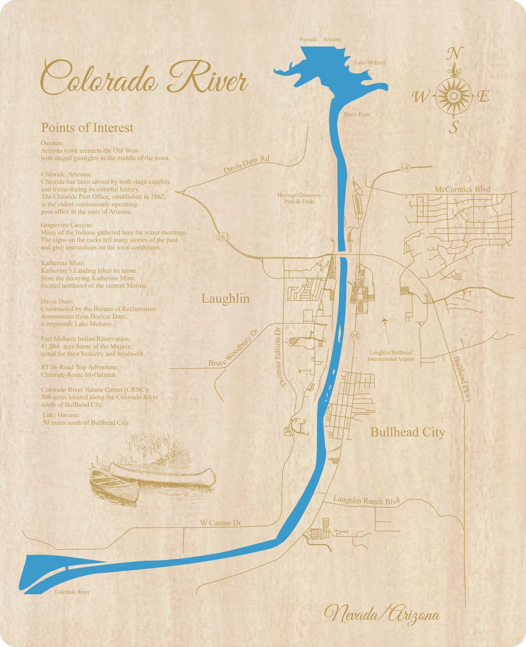 Laughlin, Nevada and Bullhead City, Arizona Laser Cut Wood Map
