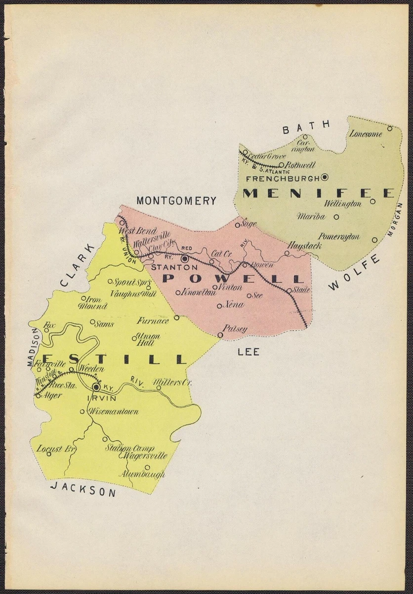 ESTILL MENIFEE POWELL County KENTUCKY Antique Map 1893 | eBay