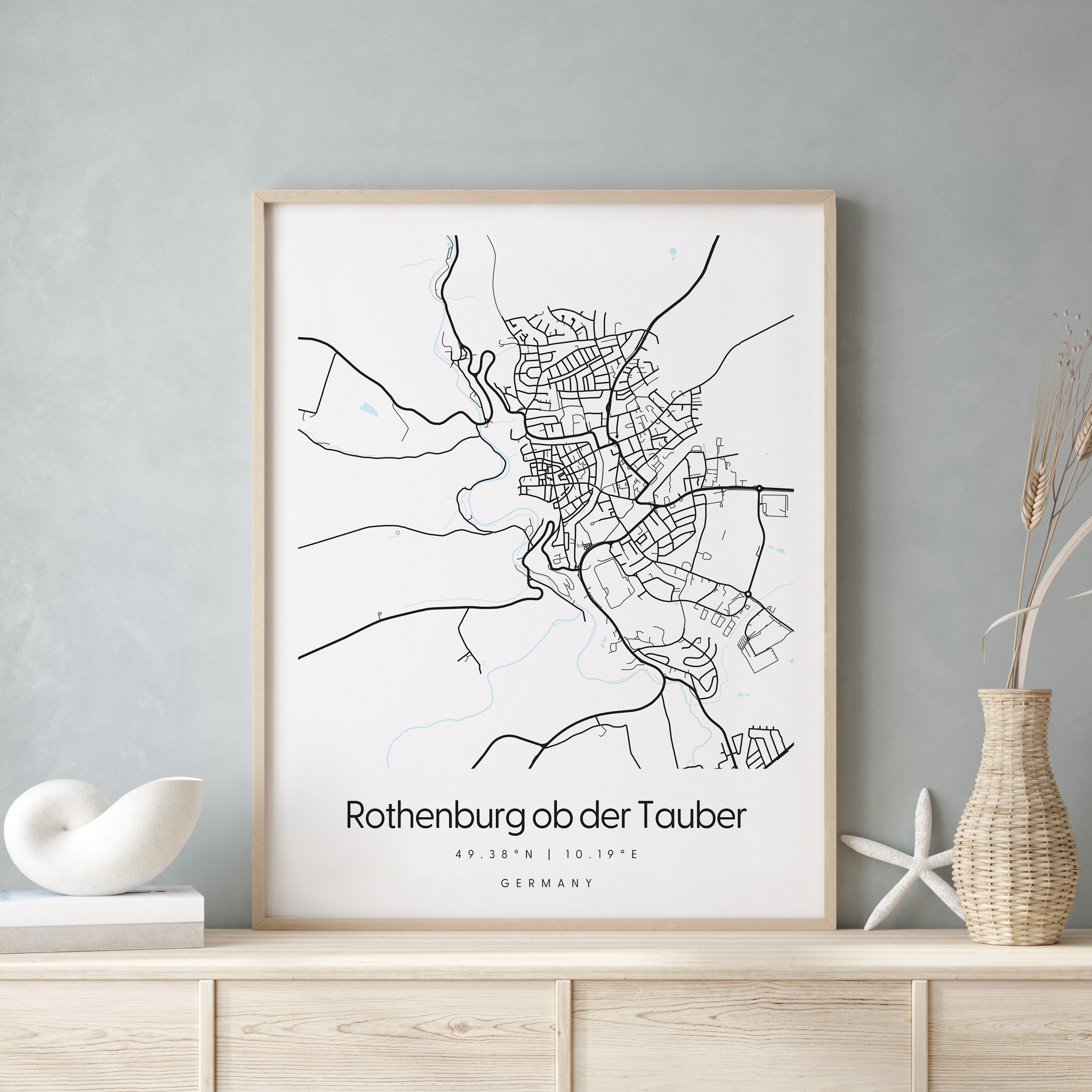 Rothenburg Ob Der Tauber Germany, Digital Art Map, Digital Print